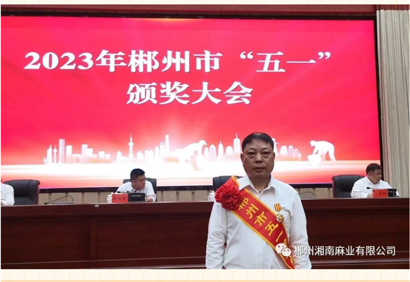 喜報(bào)丨郴州湘南麻業(yè)黃友清同志榮獲“郴州市五一勞動(dòng)獎(jiǎng)?wù)隆惫鈽s稱(chēng)號(hào)