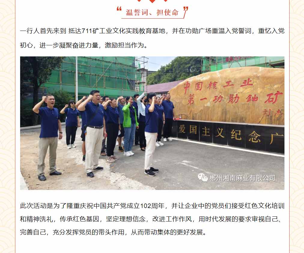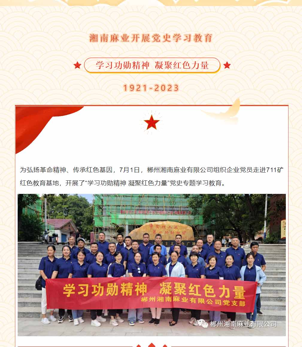 學(xué)習(xí)功勛精神 凝聚紅色力量——湘南麻業(yè)開展黨史學(xué)習(xí)教育